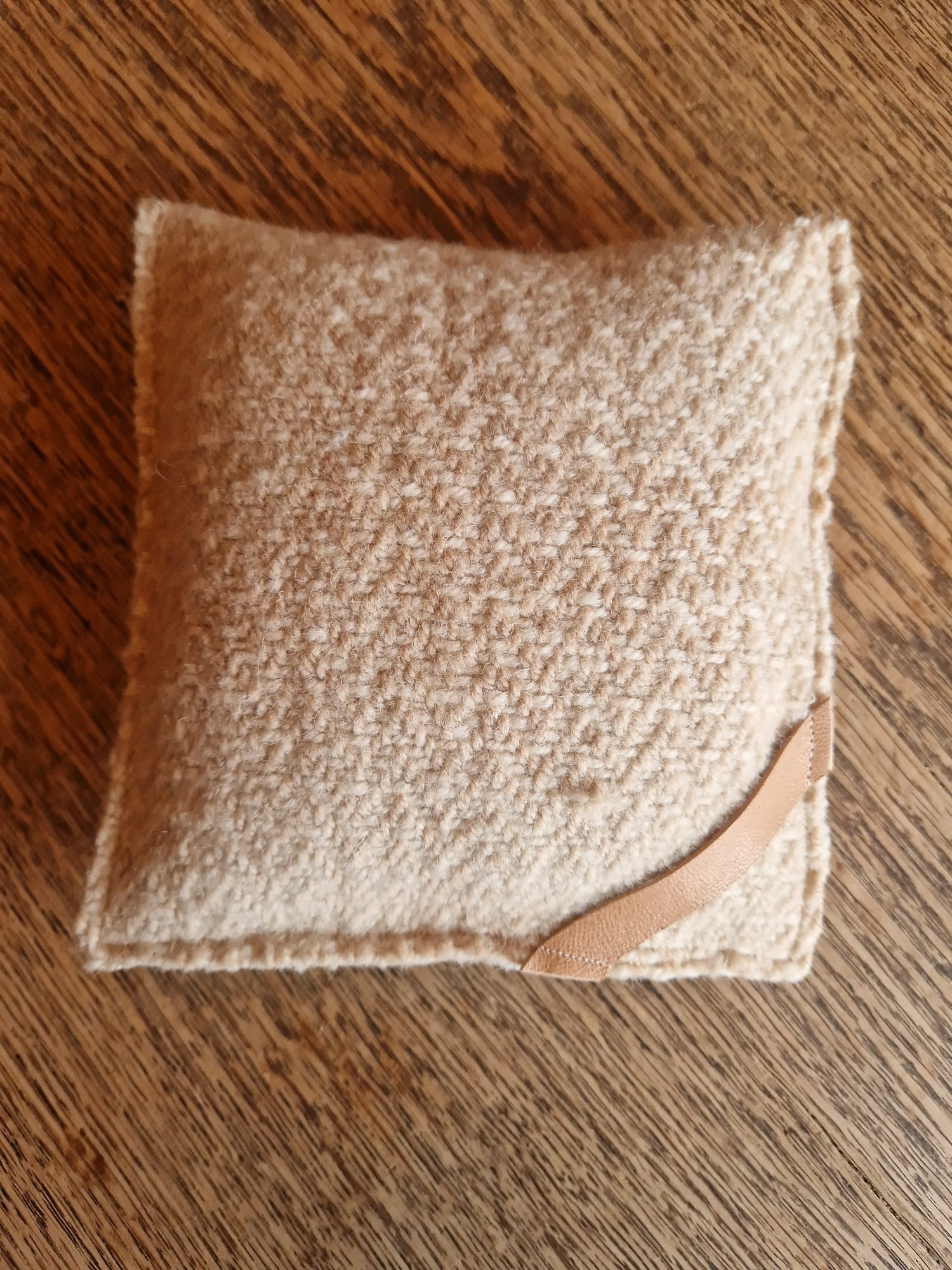 Gefüllt mit kaltgewaschener Rohwolle ist dieses Kissen ein kleiner Helfer für vielerlei Situationen.